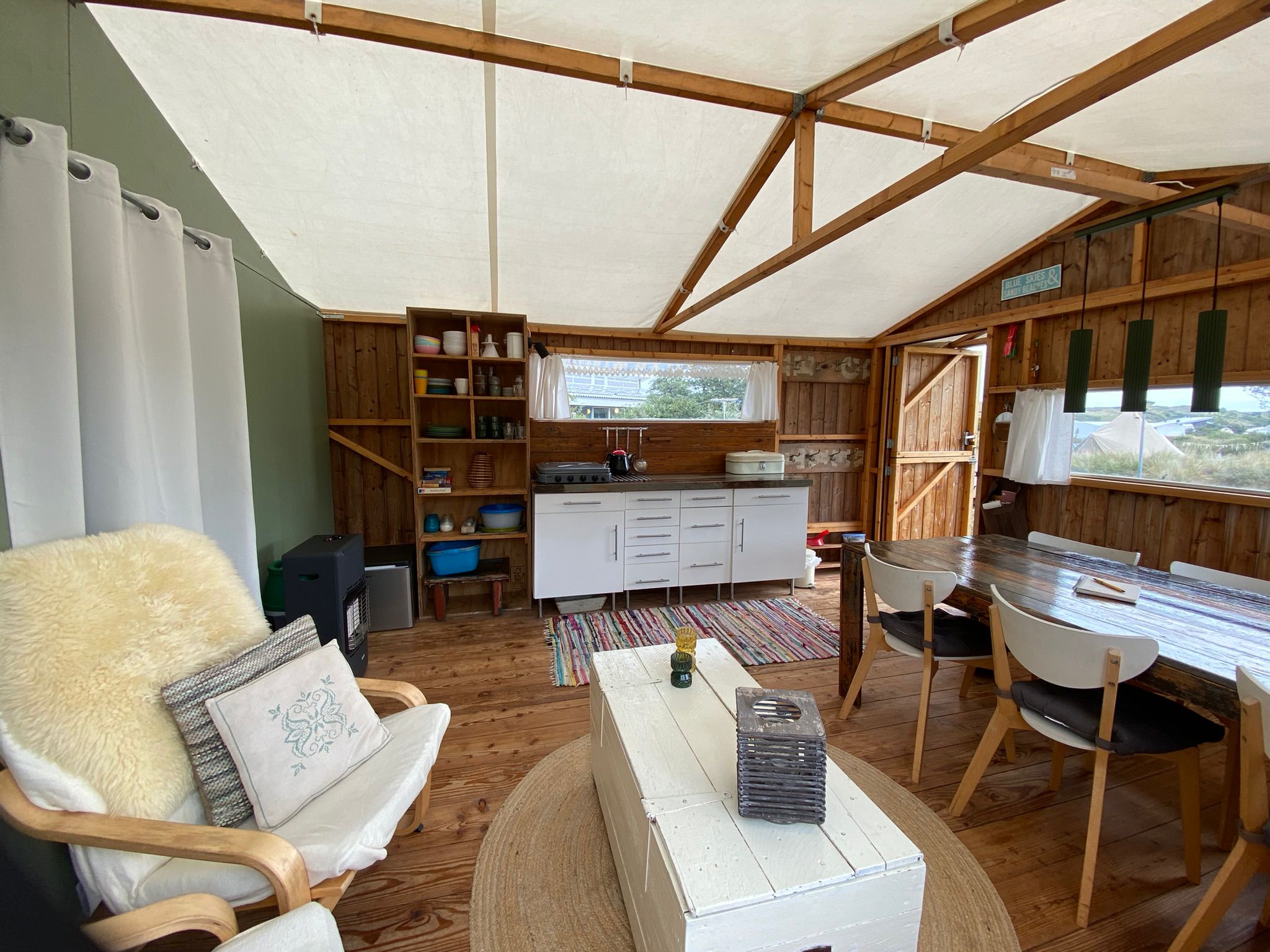 Fijn dat er een koelkast op gas en een zonnepaneel is. Simpel maar compleet.