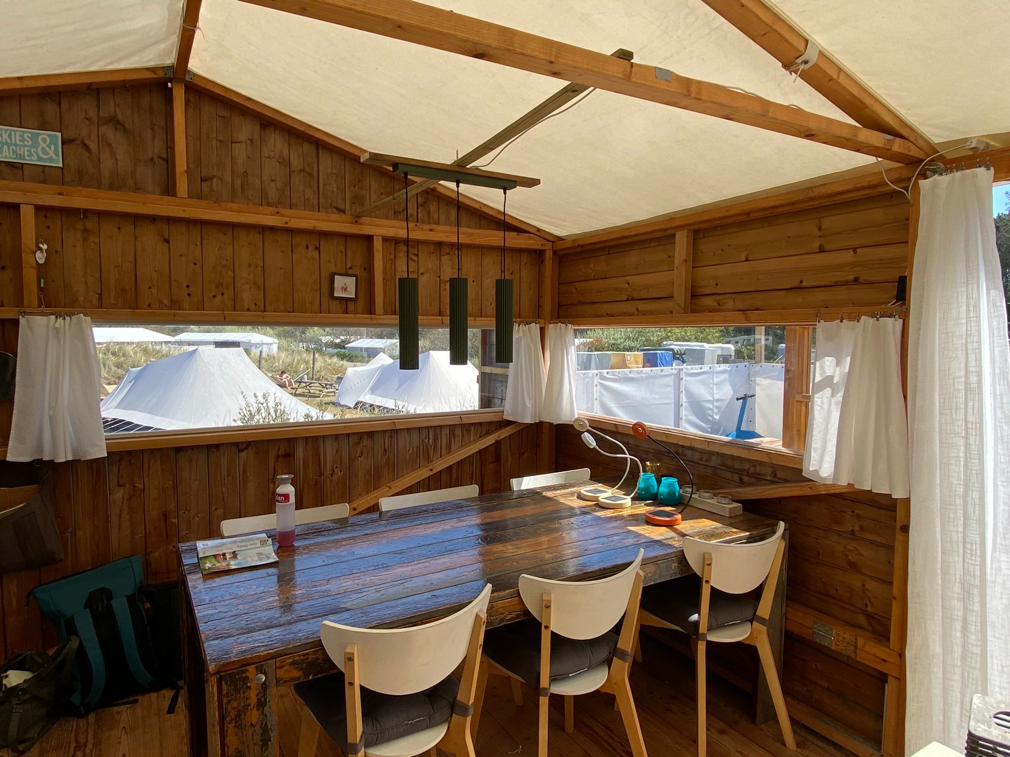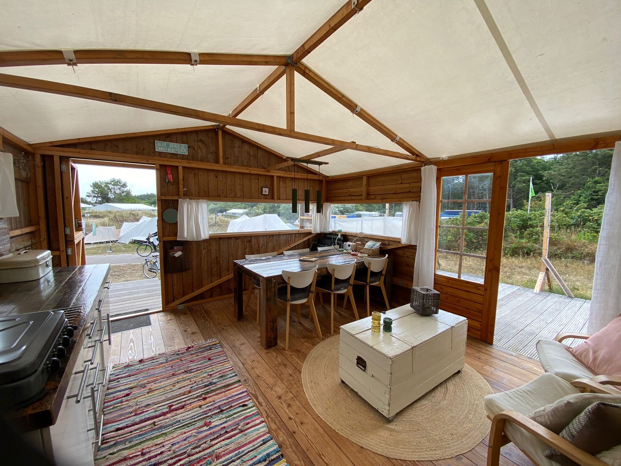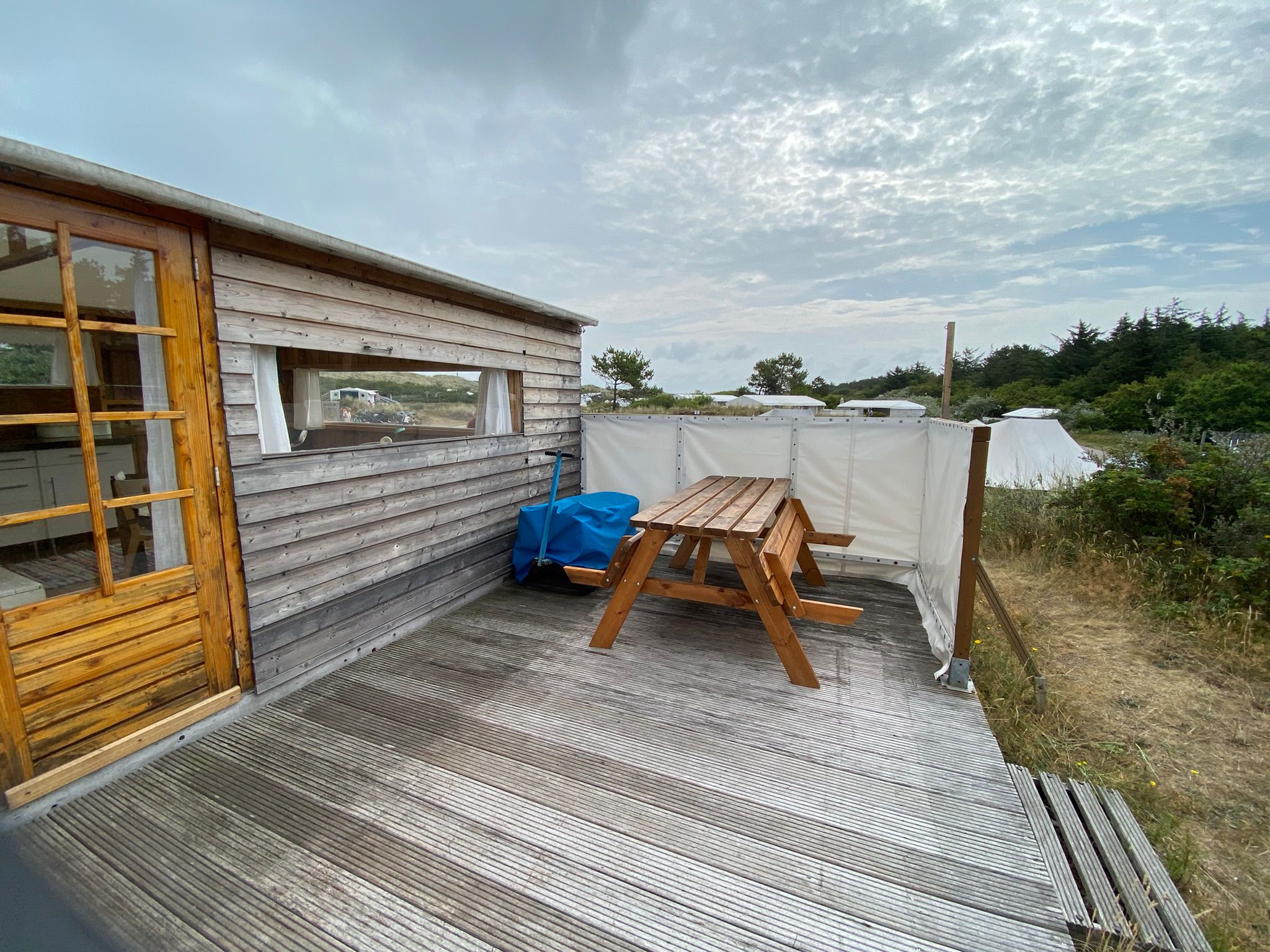 Dúnsicht is een authentiek tenthuisje op Camping Stortemelk, geschikt voor maximaal 6 personen. Je ervaart hier de charme van kamperen in de natuur, gecombineerd met praktisch comfort.