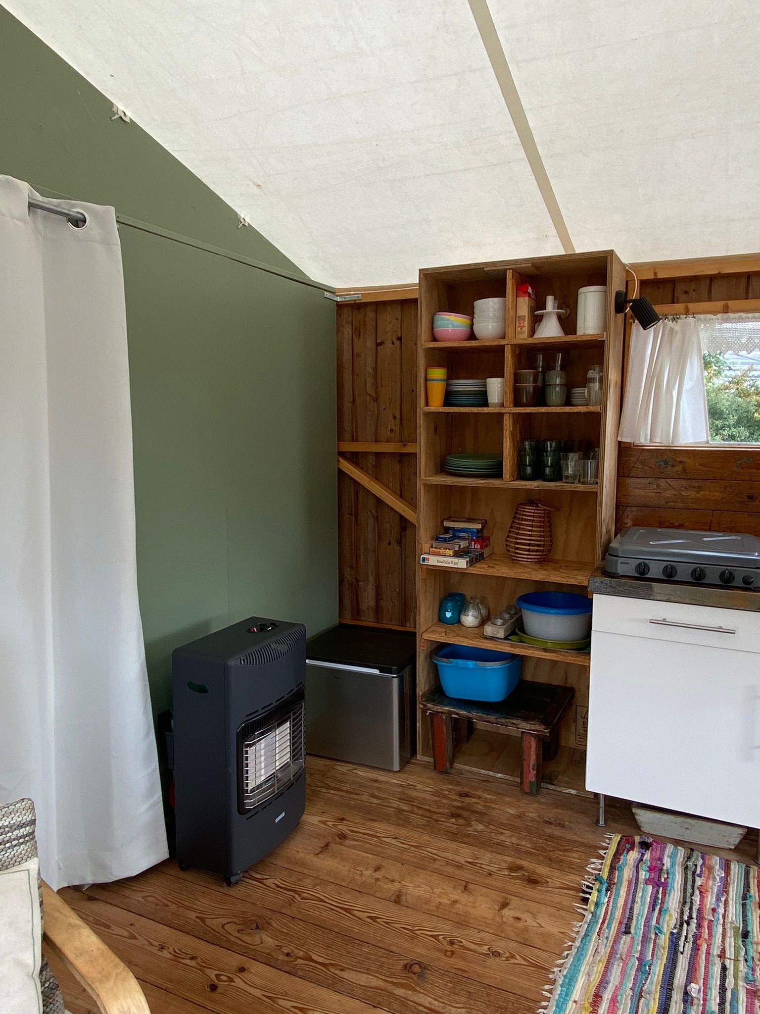 Fijn dat er een koelkast op gas en een zonnepaneel is. Simpel maar compleet.